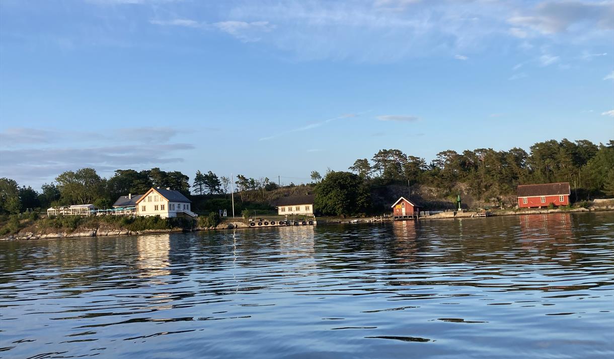 A 4.5 km blue-marked coastal trail runs around the entire island. Langøya Hovedgård Restaurant is located in the same area.