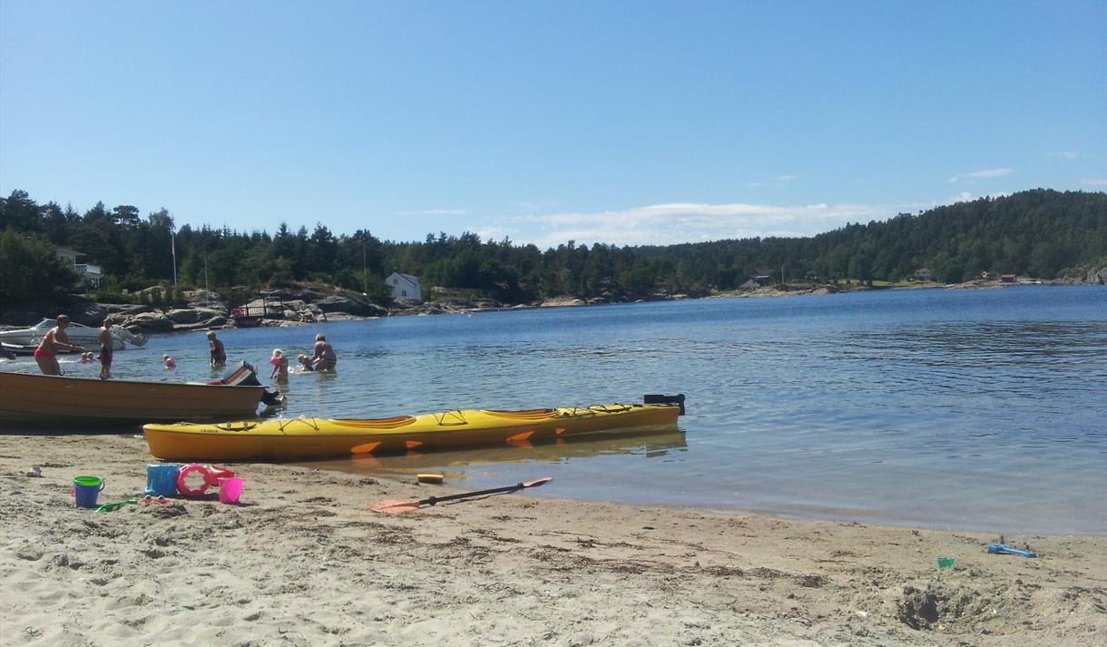 One of the best beaches in Bamble is probably Elvik beach, a beatiful sandy beach. Elvik is best accessible with boat. Elvikstranda is best accessible from the water. It is a parkingplace by the road barrier, and with 1 km walk down to the beach.