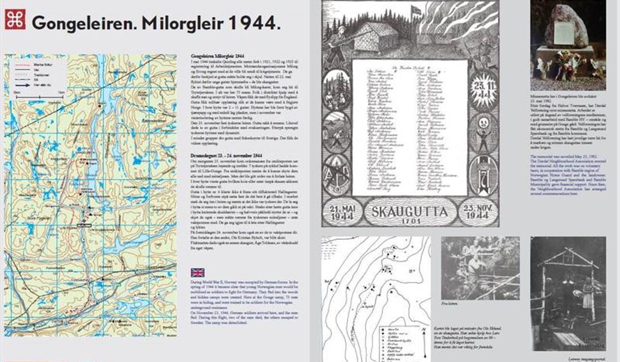Then it has healed again. In conjunction with the 75th anniversary of the Gongeleiren amusement park tour guide in 2019, Bamble Turlag and Dørdal Vel agreed to redevelop the trail again and to re-mark it. It was also expanded to move from the Gong camp to the lookout post used by the skaugutta to see if there were Germans on their way to the camp.