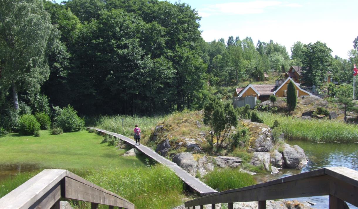 -Further trek on the mark leads south through the forest to Sandøya center. Turn off the thirst or have dinner at the combined shop and cafe in Sundet.