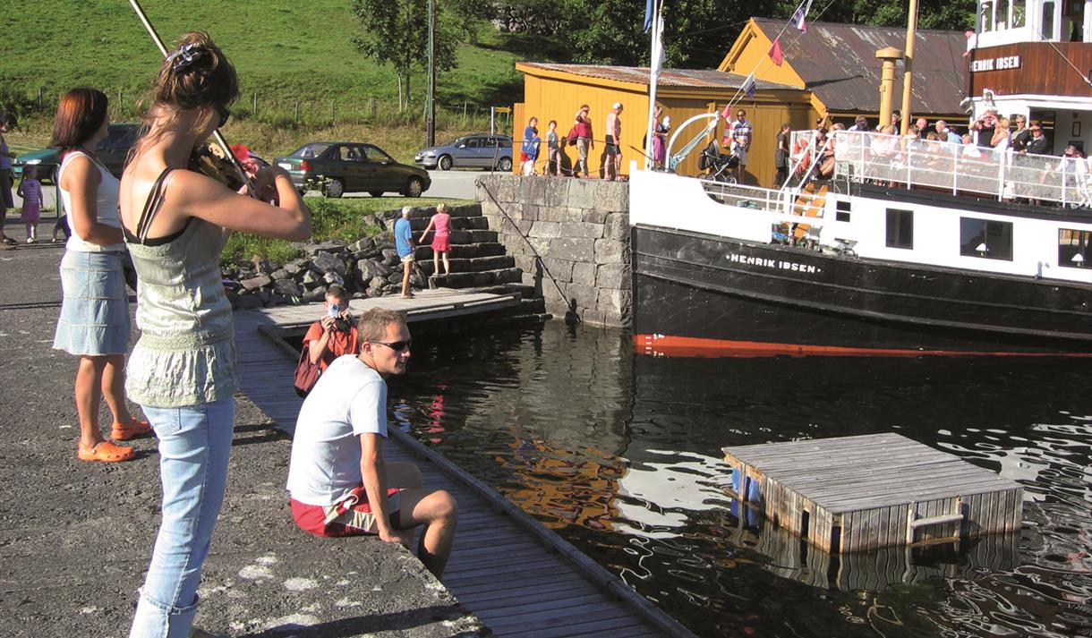Ca. 10 berths at the guest quay. Shower/WC, laundry, drinking water, boat toilet emptying, kiosk with light meals. Fuel at separate quay. Cabins at the camping site Bandak Camping.