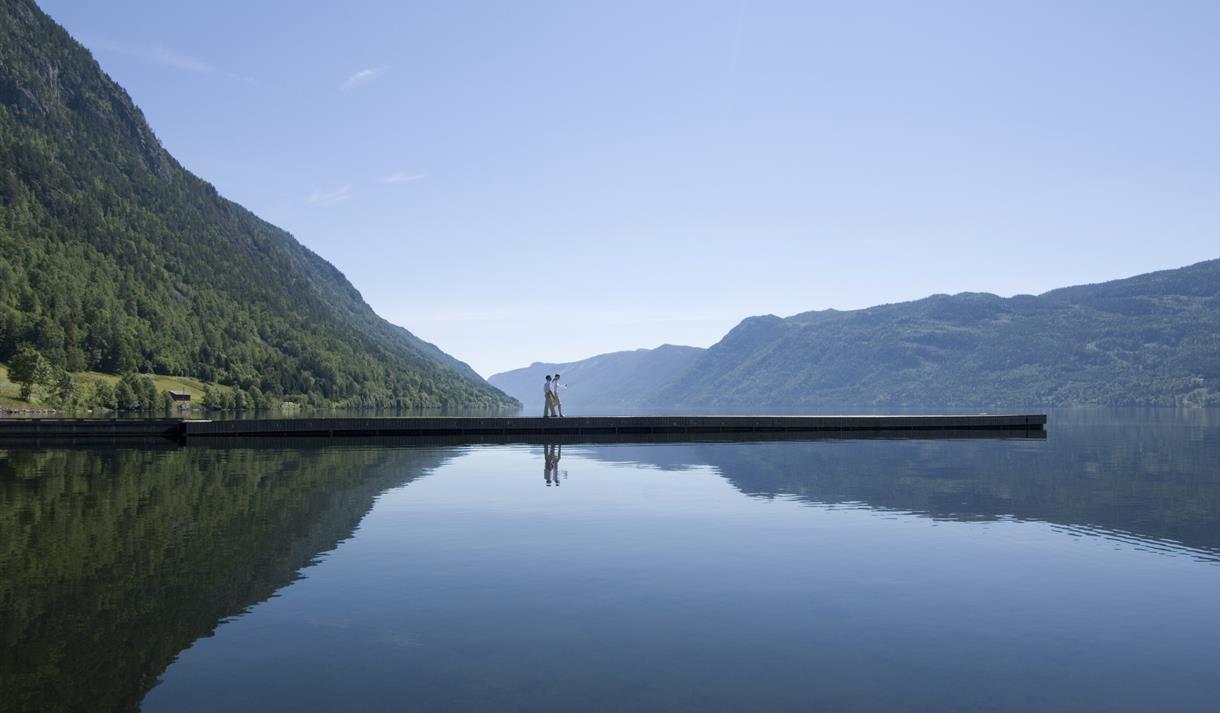 Pier on the south side of Lake Bandak / The Telemark Canal with sleeping accomodation for…