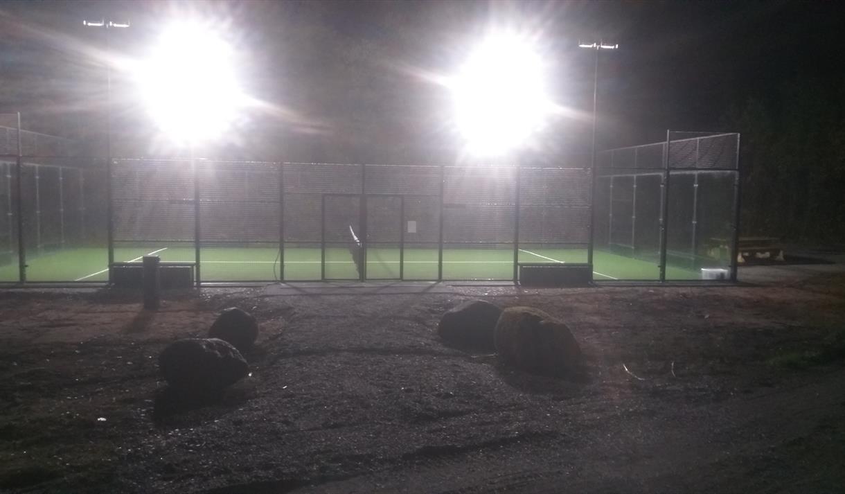 The track stays up as long as it is snow-free. The court has lights so you can play in the dark. Booking is done via Matchi, the code you receive by email is used for the lock. The racket and balls are on the court, and are part of the court.