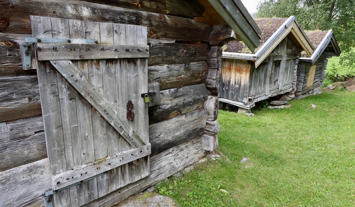 The cabin came from Bronelid, a place west of Lake Totak. He moved the barn (made of birch) and a small storage house with him from Øygarden, and he fashioned a cowshed from an old bath house he found somewhere else.