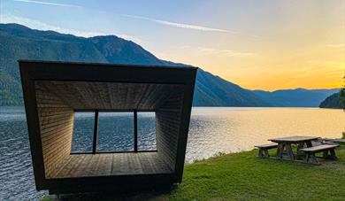 Lindeviki Canoe Camp on The Telemark Canal, TokkeEstablished campsite a modern "padlehuk" for overnight stay, camp fire spot, toilet and space for tents.