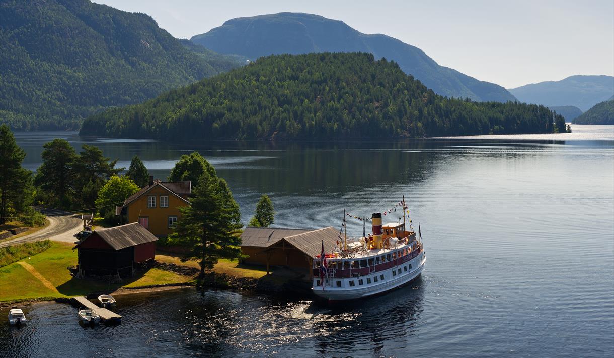Lastein Bryggjekafé, TokkeLastein Bryggjekafe is a nice little summer restaurant on the pier at Dalen and is the arrival point for the veteran ships M/S Henrik Ibsen and M/S Viktoria.