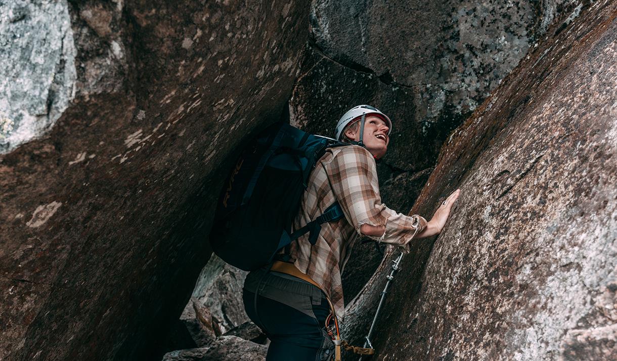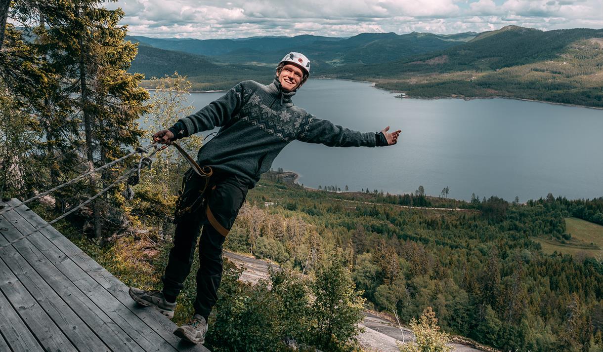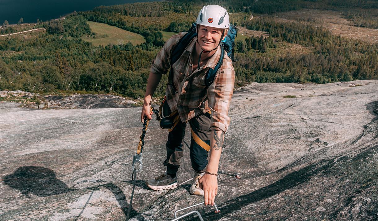 Via Ferrata Telemark ascends Skrede Mountain. The Via Ferrata route is designed for families and active children aged 7 and above. Rappelling is suitable for those aged 15 and over. Please consider the trip as a 'full-day event.' You can expect to spend 4 hours or more on the excursion.