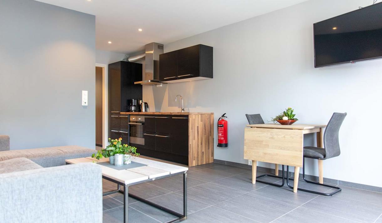 Kragerø Sportell & Apartments offers accommodation for every need - from cozy single rooms to family rooms for up to four people. The Sportell also has 18 spacious holiday apartments for those who want a higher standard and plenty of space for the whole family. The apartments are 50 sqm, with two bedrooms (up to six people), bathroom, living room, and kitchenette.