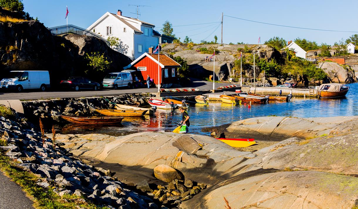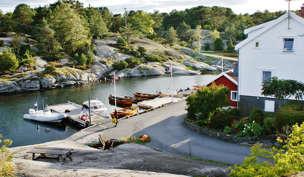 Portør Hytteutleie is located at Portør Harbour that used to have pilot and custom station. You drive along a nice road all the way to the cabin area.