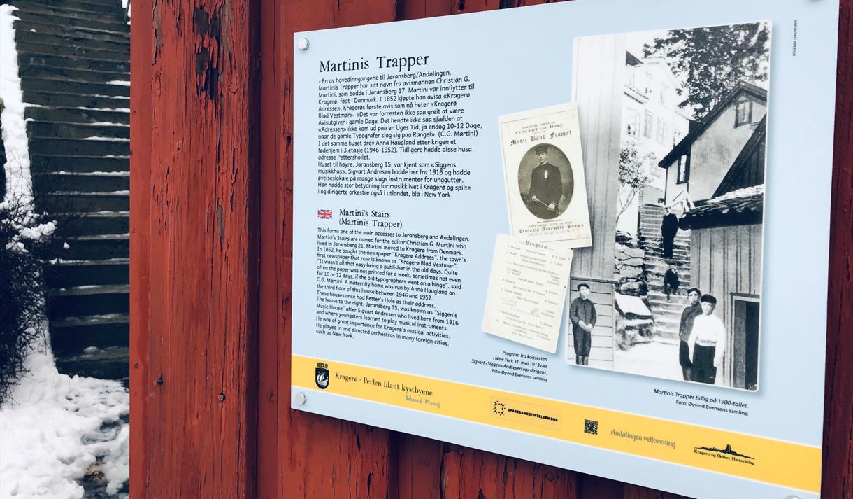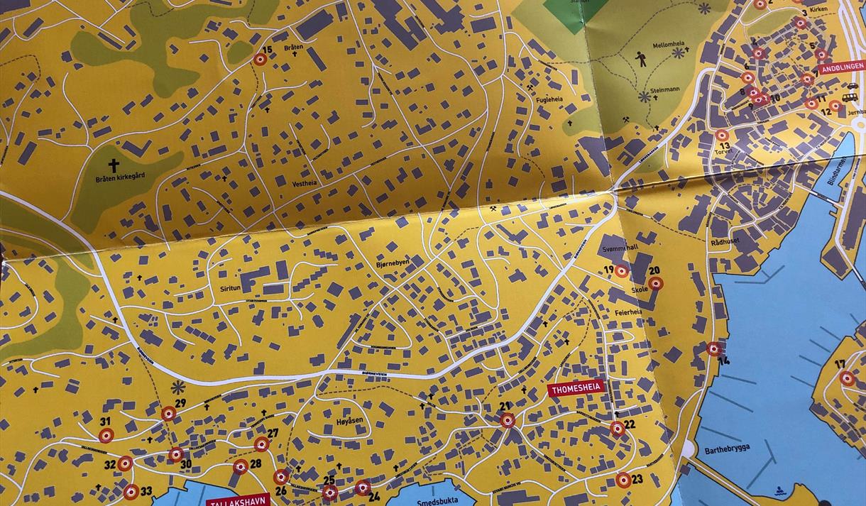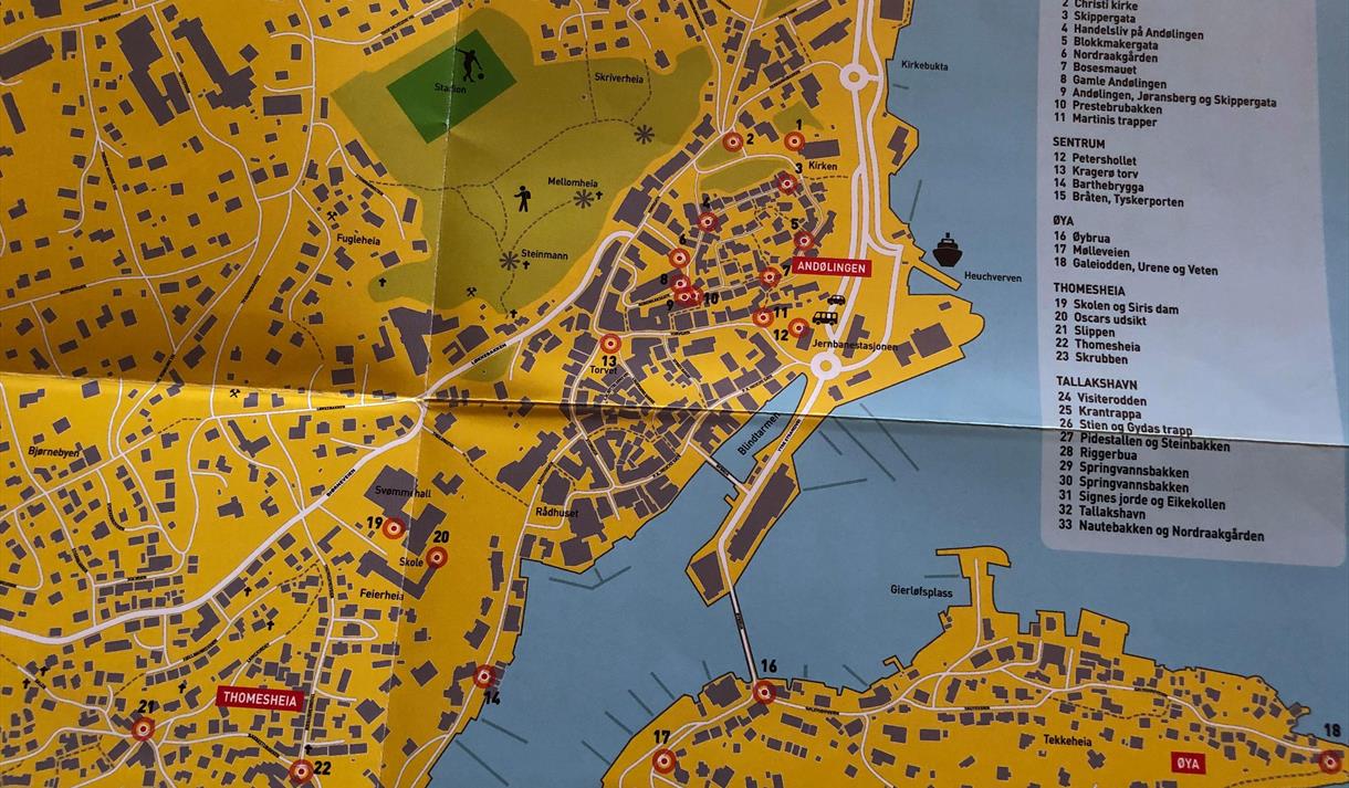 The signs were set up by the Municipality of Kragerø in cooperation with the residents’ associations of the neighborhoods on Øya, Thomesheia Andølingen and Havna. The signs are supported by Sparebankstiftelsen DNB.