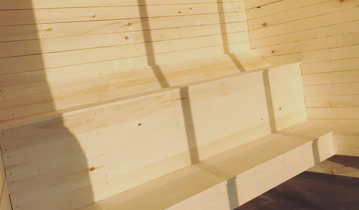 There is room for up to 14 people in the sauna, which was built in 2021. You can choose a drop-in or a private booking for you and your group to enjoy the sauna all by yourselves.
