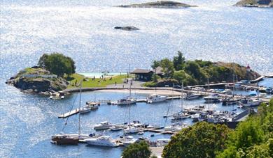 Gunnarsholmen is located right beside the Kragerø guest harbour, just  a short walk from the town center, and is the perfect place for the whole family to enjoy hot summer days!