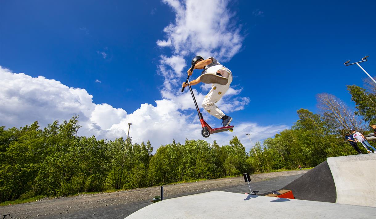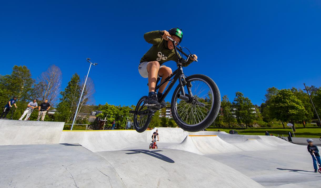 The park opened in April 2020, and is one of the best Skate parks in southern Norway. Here you can enjoy skatebording, cycling etc. free of charge.