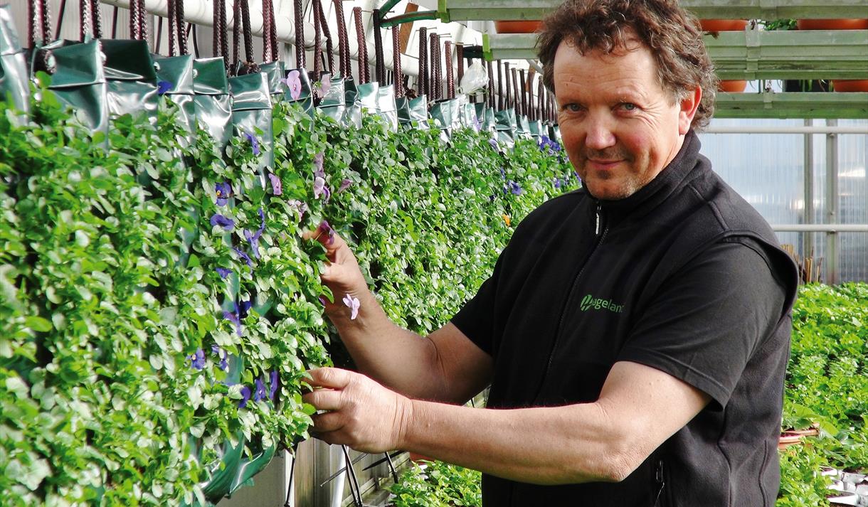 Hageland Ørvik produces a wide range of summer flowers in a private nursery, including fuchsia, geranium, lobelia and snapdragons. Hanging ampler is a garden center's specialties - with good hang plants surfinia, verbena and million bells.