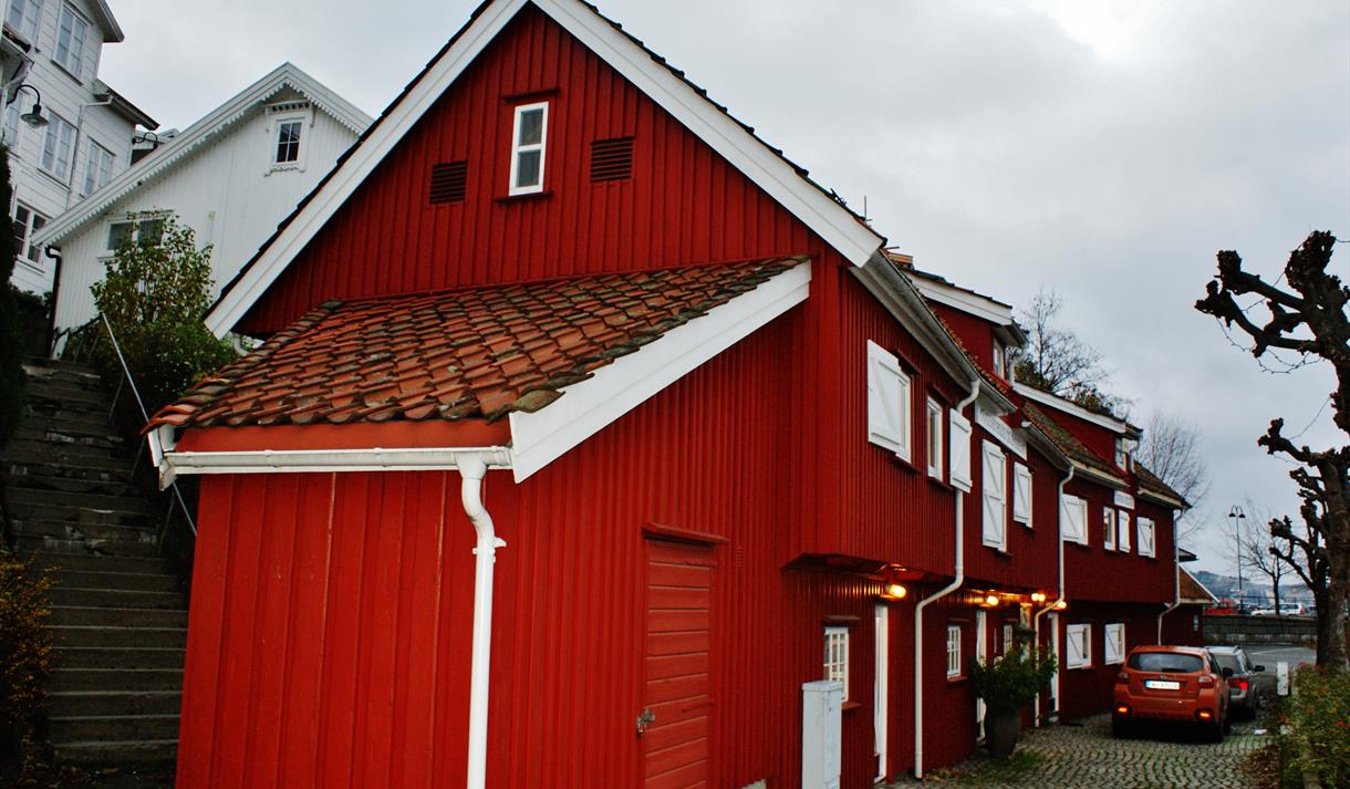 With's boder is the red building located next to Jernbanetorvet. It was built in the beginning of the 1700s. It was originally two large and one small storage houses that were used for loading and unloading of flour, feed grains and chemical fertiliser. At that time, the edge of the sea came just by the houses.