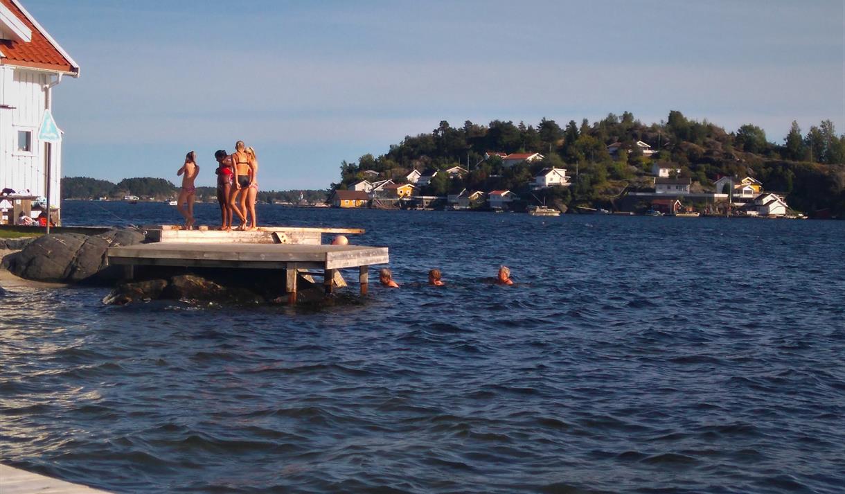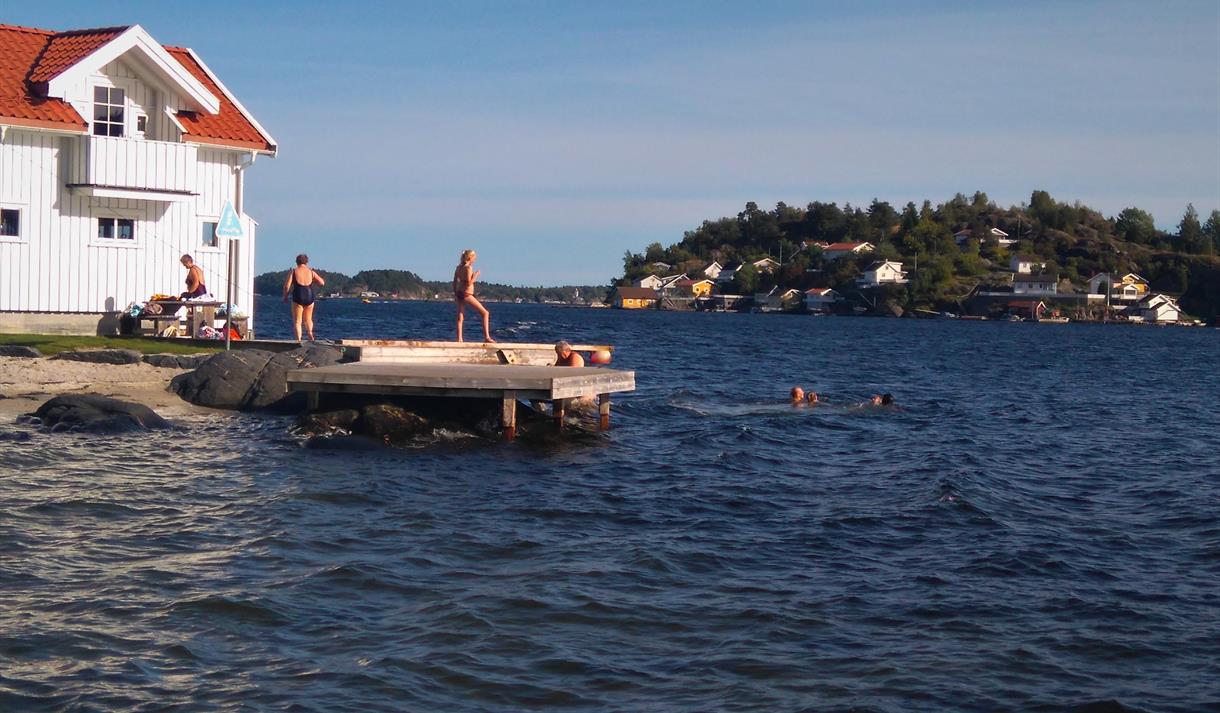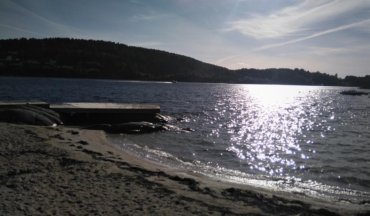 150 meters from the large parking area and the harbour Tallakshavn you´ll find this idyllic family-friendly bathing spot, called Nautebakken. There is a bench with picnic table and a nice sandy beach for children. It is easily accessible both by foot (15min) or by bike from the town center. For those arriving by car, please park at Tallakshavn.