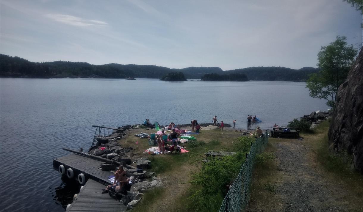 Terjesen is a small bathing spot with a sandy beach and a diving board at the Hellefjord, but much closer to Helle center than Slerva. Follow the road from Helle center (Coop Extra) towards Skarbo / Fossing. If you have passed the first long hill and a couple of swings, then you have only 100 meters left!