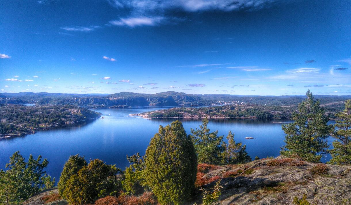 The second half of the two most beautiful viewpoints in the Kragerø-archipelago you will find at Østre Gumøyknute, towering 107 meters above sea level. Here you will find Kragerøs best kept burial mound, probably dating all the way back to the Bronze Age. From Østre Gumøyknute you can follow the path down to Skutevika, which is a well-known and popular marina for boat tourists. Or the other way around. The roads and trails on the island are also great for cycling. By foot the hike takes about half an hour from Skutevika to the top. Remember to bring your binoculars.