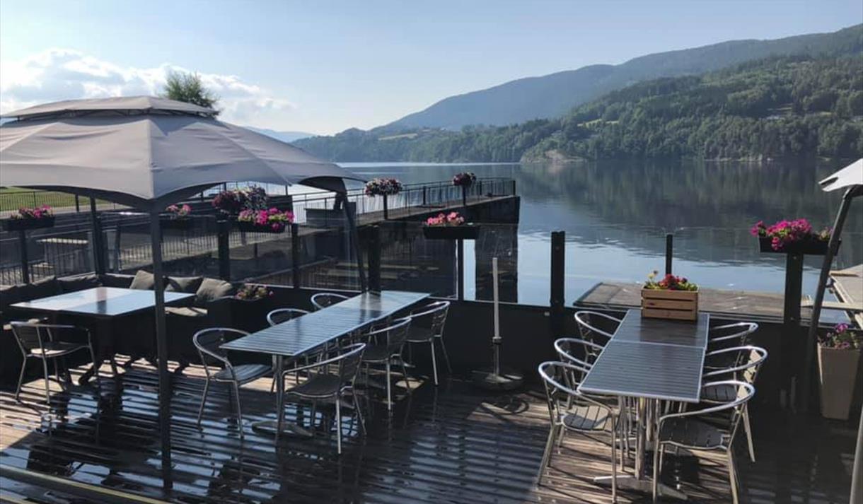 Dany's Café in Bok & Blueshuset offers warm dishes, sandwiches, cakes and more. Here you’ll also find great outdoor seating right at the shore of lake Heddalsvannet. Live stage both in- and outdoors.