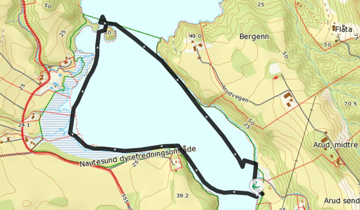 The route continues along reed beds and bird habitats, where the water can be shallow. You will pass two islands, Vesle Kråka and Store Kråka. It is recommended to take a break and have a snack on Vesle Kråka. On the return, paddle around Store Kråka, and always stay close to the shore.