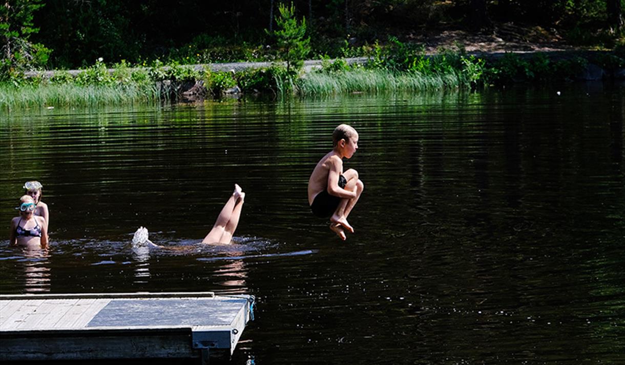 Tinnemyra is a popular, family-friendly bathing area located in Notodden, Telemark. The site features a sandy beach, calm waters, and safe swimming conditions for children and families. You’ll also find several places to swim from rocks and a floating dock on the lake.
