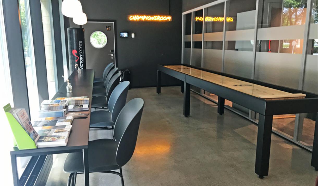The hotel lobby has a 24-hour barception (bar and reception) and guests can enjoy light meals, snacks, coffee, beer and other good drinks. On the first floor you will also find the Champions League room with a large TV screen, which you can book to watch your favourite team fight for the win.