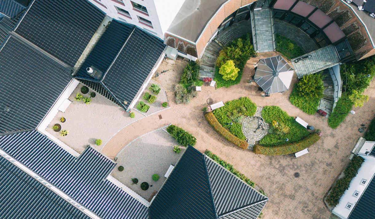 At the center of the hotel, we have a lush garden with benches and tables for guest use. For the past two years, we’ve hosted concerts there featuring local artists.