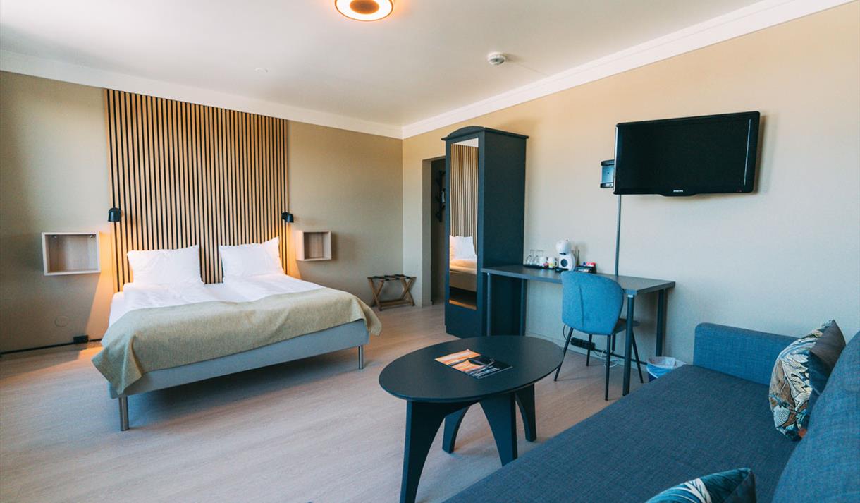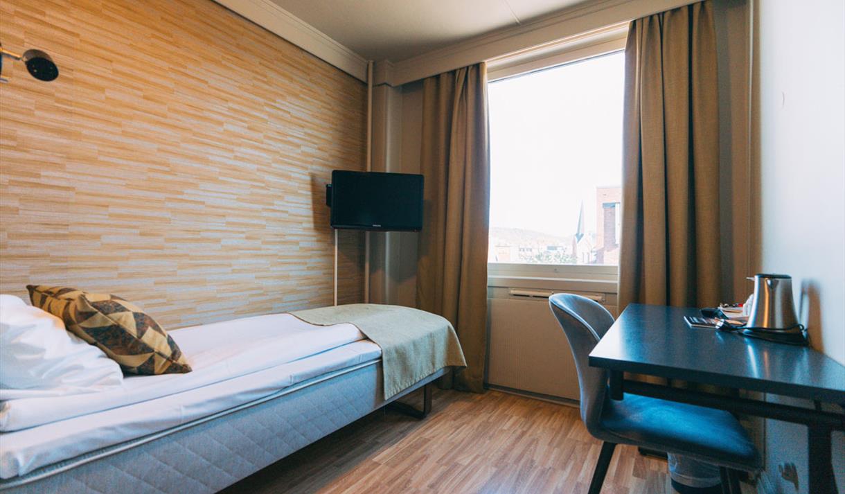 The hotel offers 109 rooms, including single rooms, double rooms, family rooms, and superior rooms. The rooms are located in both the historic and the "new" wing of the hotel and are regularly renovated. Our superior rooms, located on the 6th floor, offer views either over the nearby neighborhoods or across the city and the beautiful Porsgrunn River.