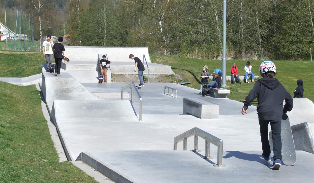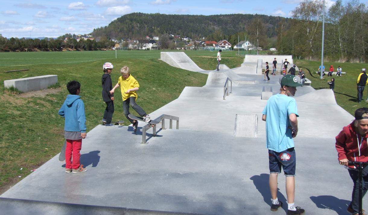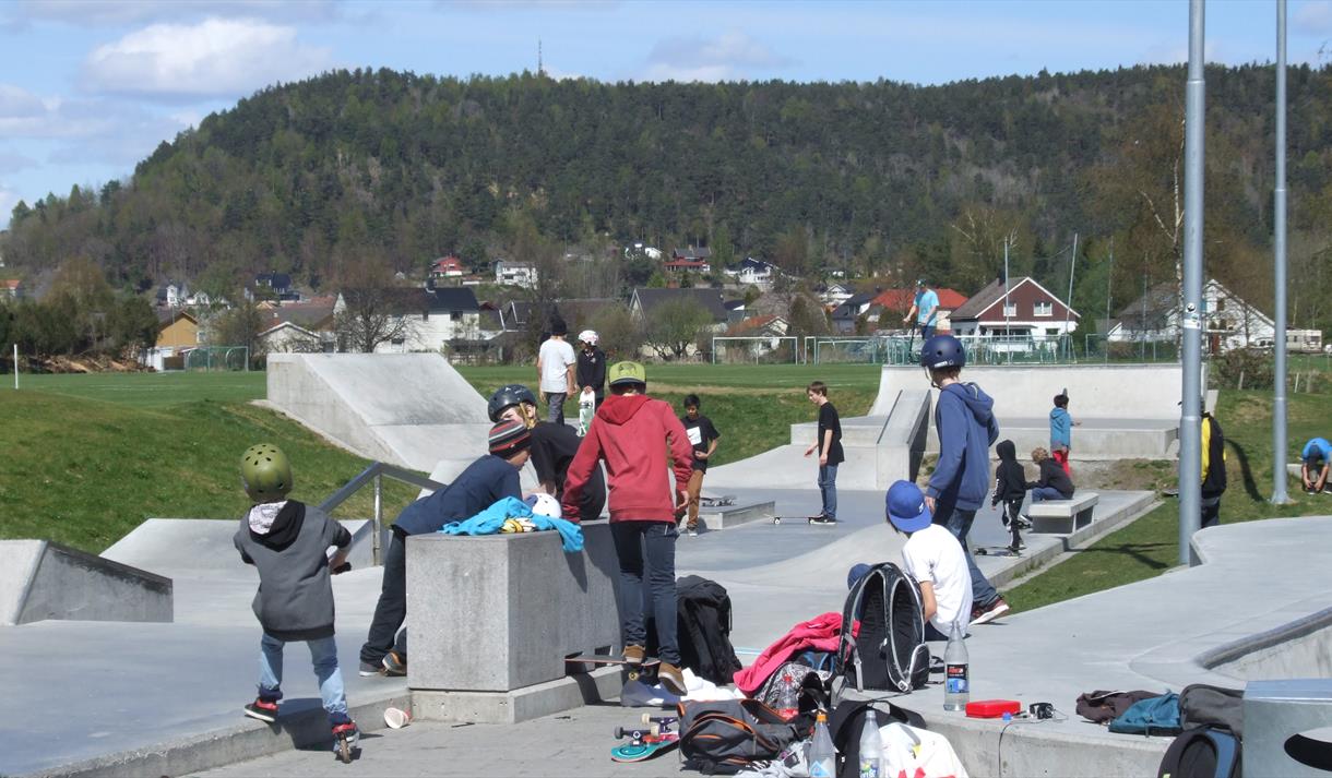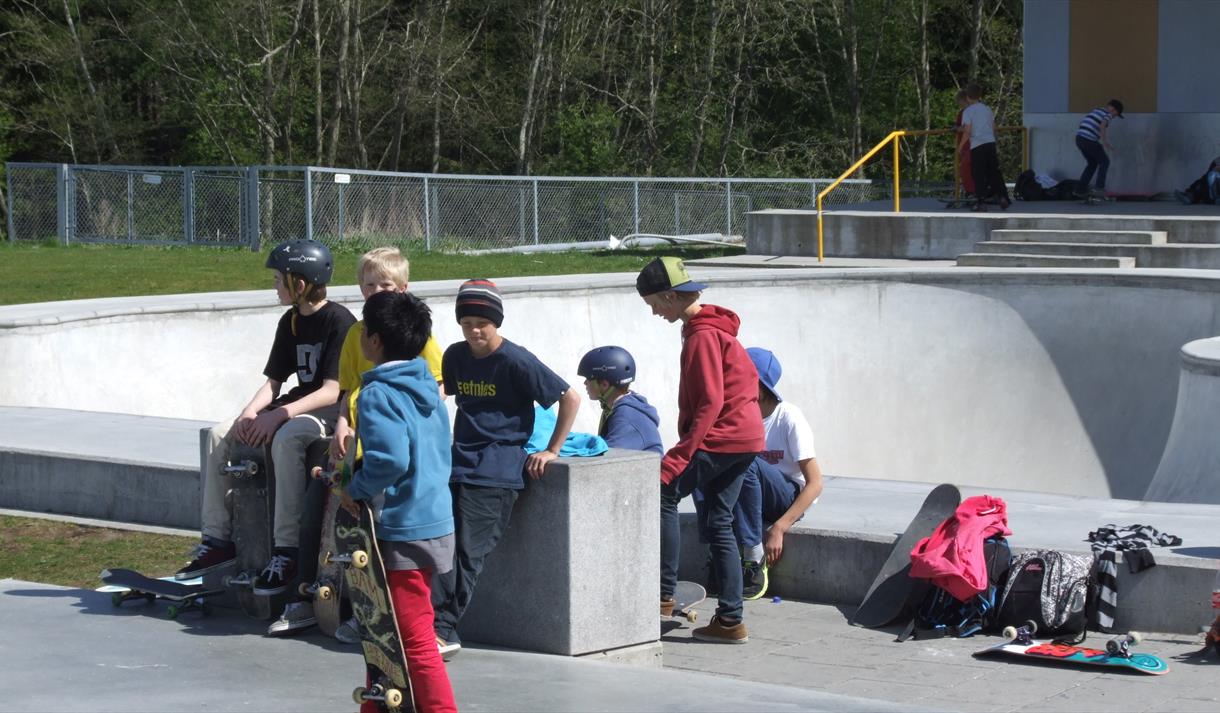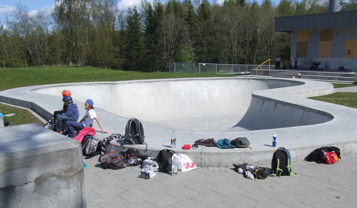 The park has 700m2 of concrete surface including a 450m2 street facility with challenges inspired by street skating. The 66 m stretch offers various elements for beginners and seasoned skaters alike.