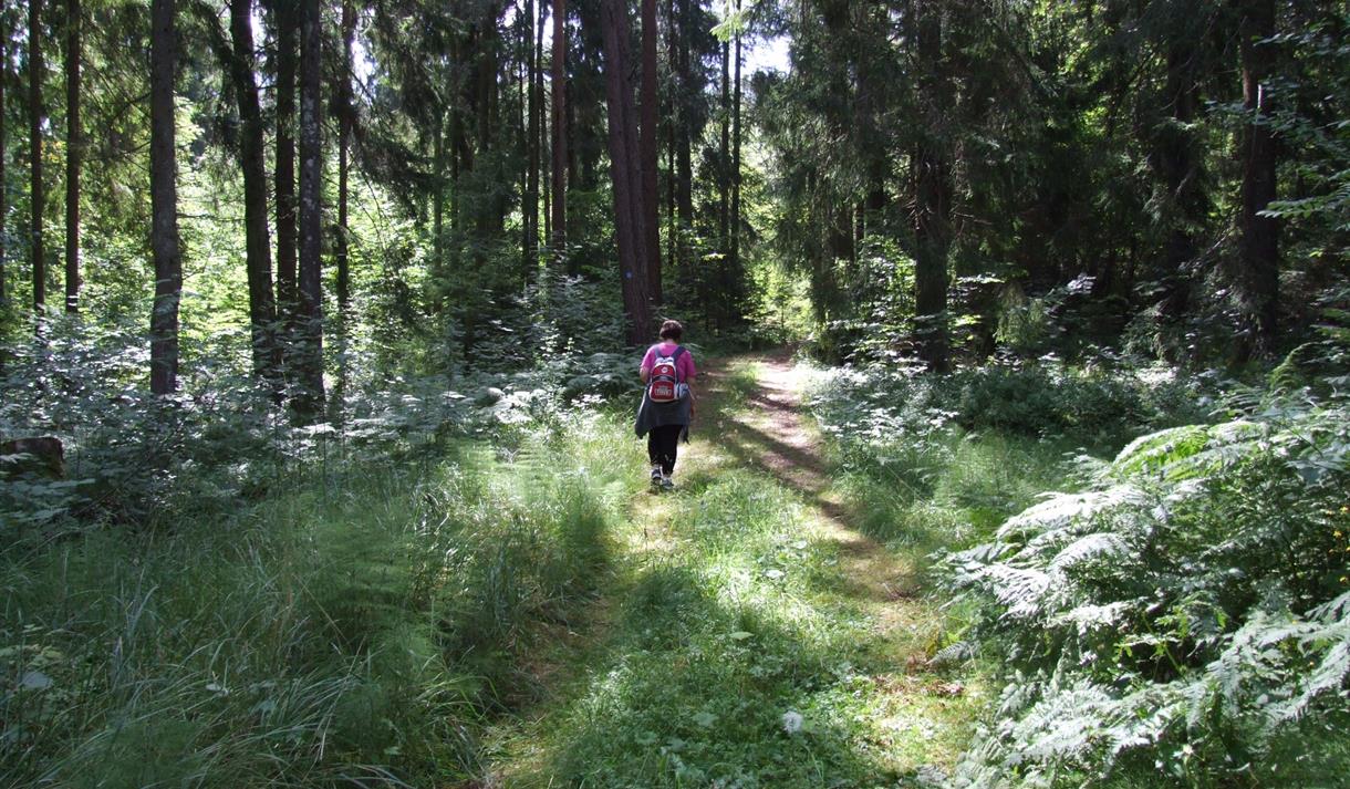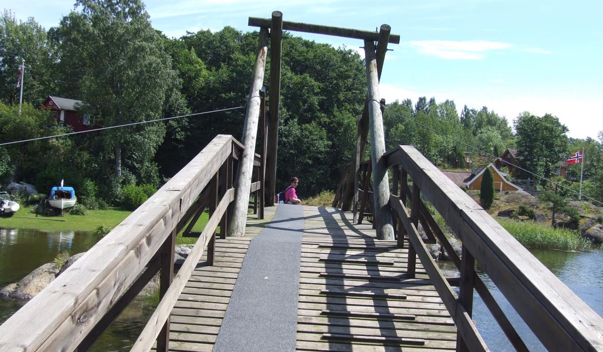 The trail runs over "Flyndresundet" to Løvøya with rugged untouched forest.