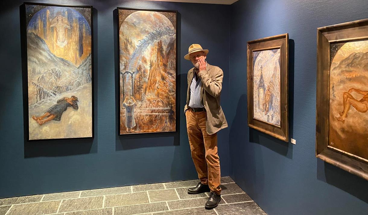 In the gallery building at Grimdalen you also find an art exhibition with paintings from The Dream Poem (Draumkvedet) by the artist Karl Erik Harr.