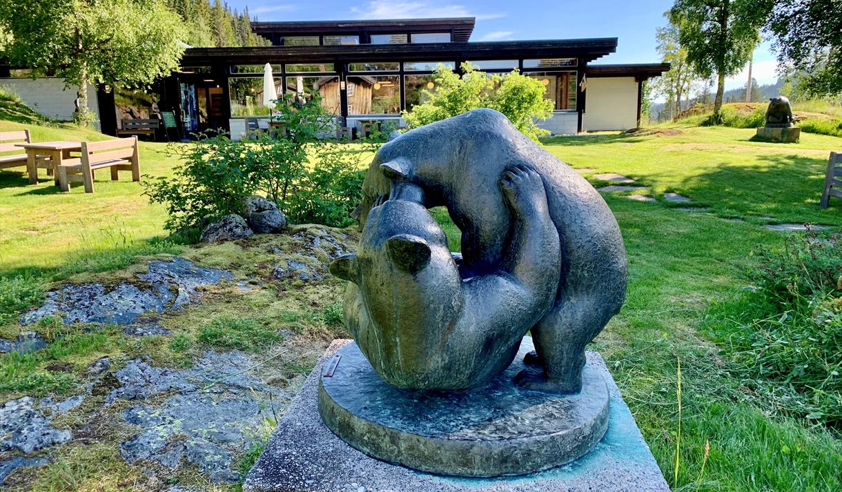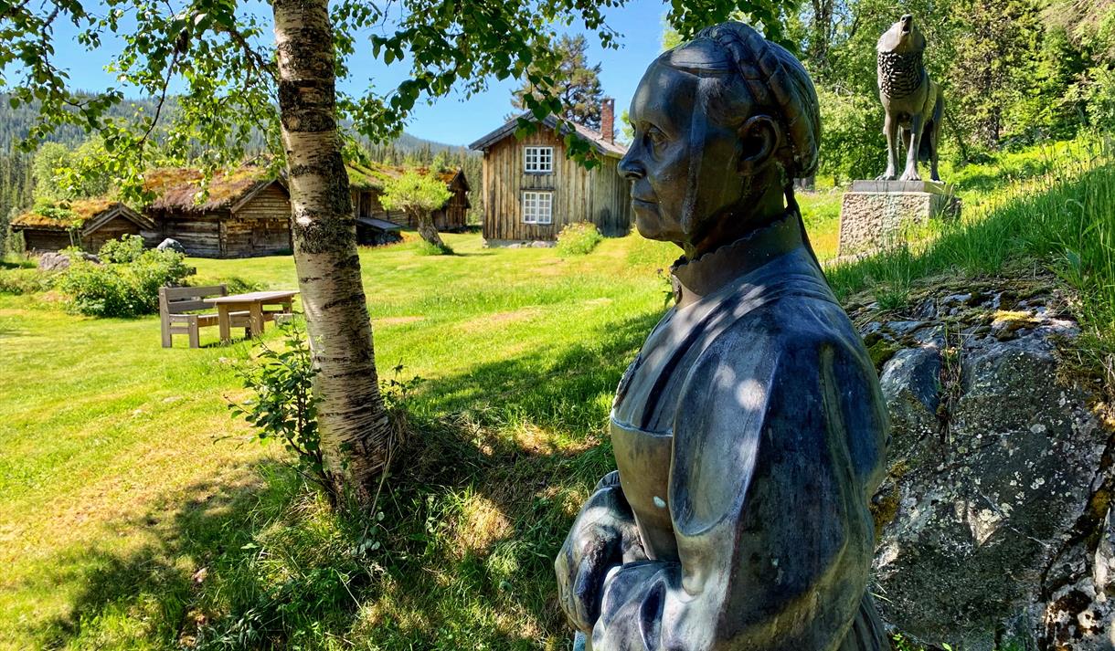The sculptor Anne Grimdalen - best known for her work in decorating Oslo City Hall - grew up here at Grimdalen farm. Today, Grimdalen is a protected country courtyard featuring houses from the middle ages and a sculptore house exhibiting works of Anne Grimdalen. Every summer, the exhibition of sculptures is supplemented with paintings by various artists.
