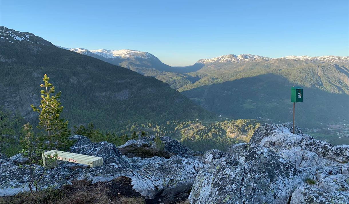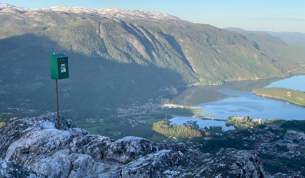 From here, a marked but steep trail continues to the summit, where you are rewarded with fantastic views over Seljord and towards Skorve, Mælefjell, and Lifjell.