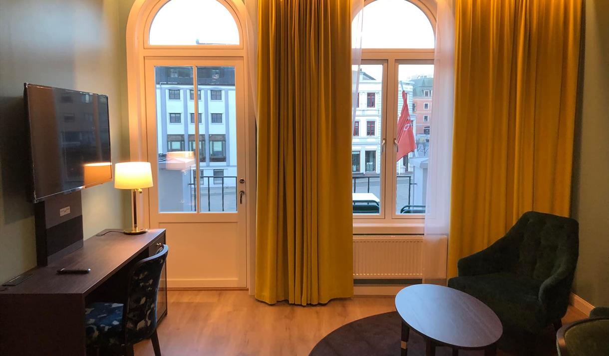 Thon Hotel Høyers has been Skien's classic hotel for more than 160 years and offers today 107 renovated unique rooms, including three roof suites with their own veranda and a panoramic view of the city of Skien. Here you live centrally and comfortably. In the lobby you can freely provide yourself with coffee from our Nespresso coffee machine.