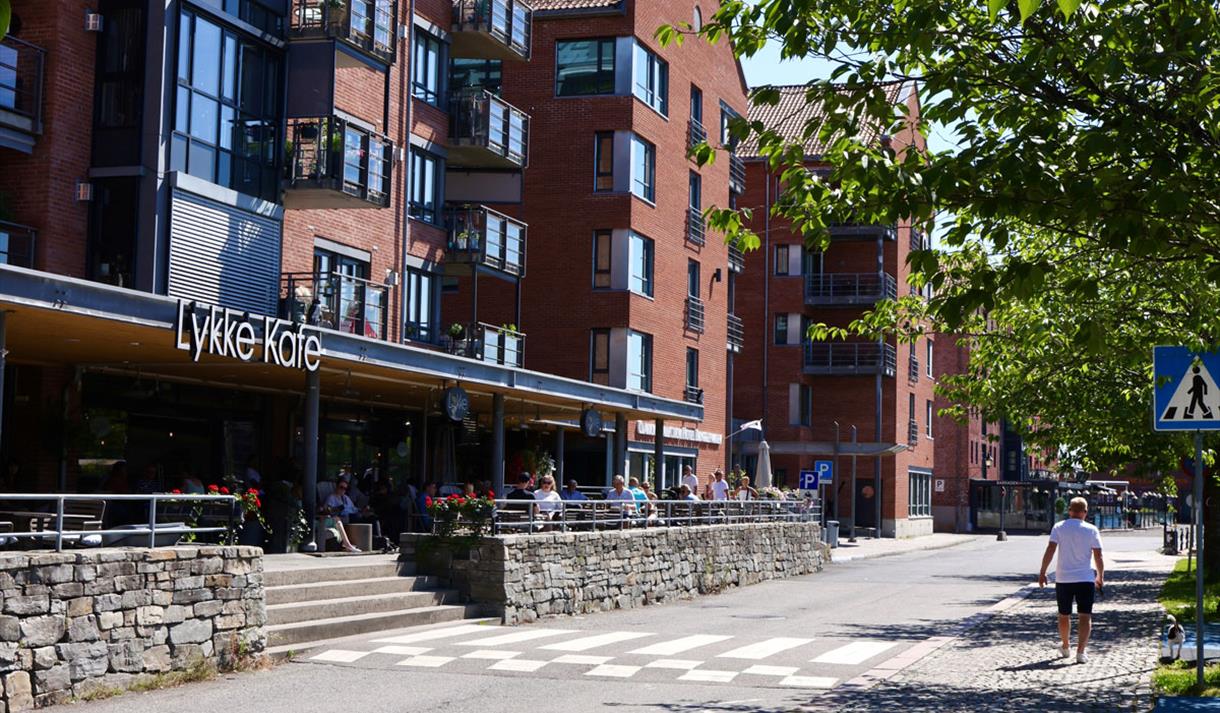 Lykke Café is a popular spot in the sunny corner of the pier in Skien. Here, you can relax and enjoy life in a vibrant yet laid-back atmosphere. Lykke offers a seasonally varied menu of both food and drinks, along with skilled baristas who know their craft. Homemade lunch, dinner, and evening meals are served, as well as a wide selection of cakes to suit every taste. Lykke also serves alcoholic beverages.