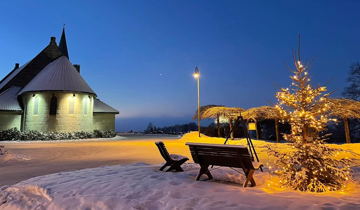 Architect Henrik Nilsen, who took the English country church as his model, designed the beautiful stone church. The Church has beautiful stained glass created by Emanuel Vigeland in 1918 - 1919, illustrating various passages from the Bible.