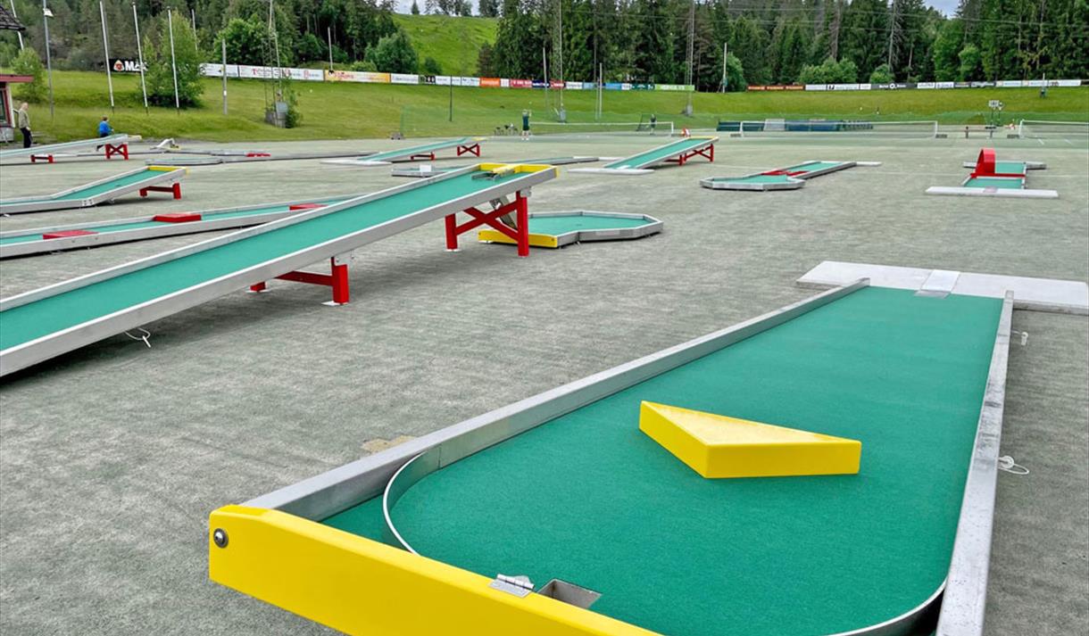 Mini golf is a great activity for families, children and young people. You will find a 18-hole mini golf course and 4 tennis courts on the artificial turf course. Equipment for mini golf or the tennis court can be rented at the Café Pucken at the ice hall.