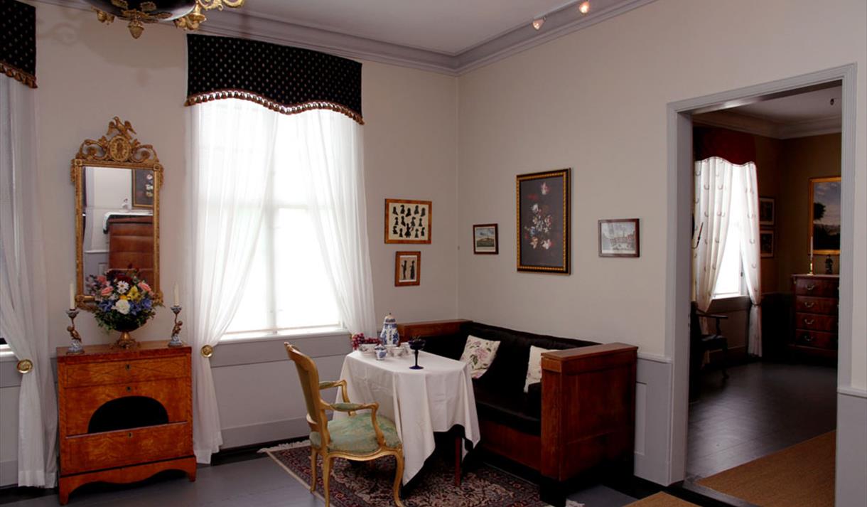The building has been restored in the Empire style, believed to be how Trade Minister Niels Aall and his family lived when they resided at Brekke in the first half of the 19th century. Niels Aall served as the Trade Minister during the negotiations for the constitution at Eidsvoll in 1814, and the narrative of his role is conveyed. 14 farm buildings have been relocated to the park, forming the framework for a beautiful open-air museum.