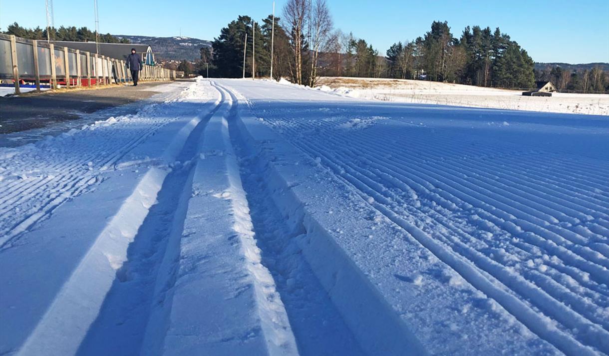 From the stop, follow Gamle Bjørntvedtveg towards Hotell fritidsparken and continue to Skien ice rink.