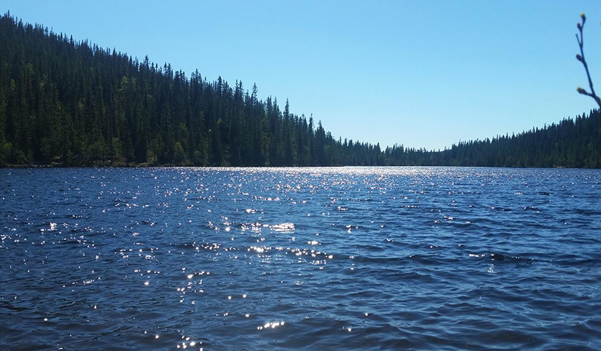 Instead, we follow the route to Lake Gjevarvatn on good gravel roads along the water’s edge through Langlim’s forest and moorland terrain.