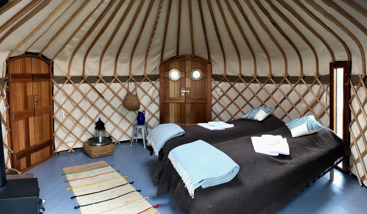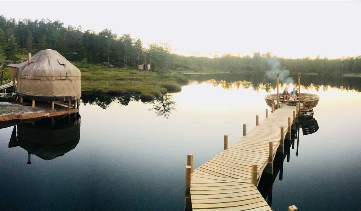 Last year the camp had a major upgrade with a huge lounge-yurt with 5 meters up to the roof with hanging fireplace, a toilette in all tents and a "Maldives jetty" with its own campfire in the lake.