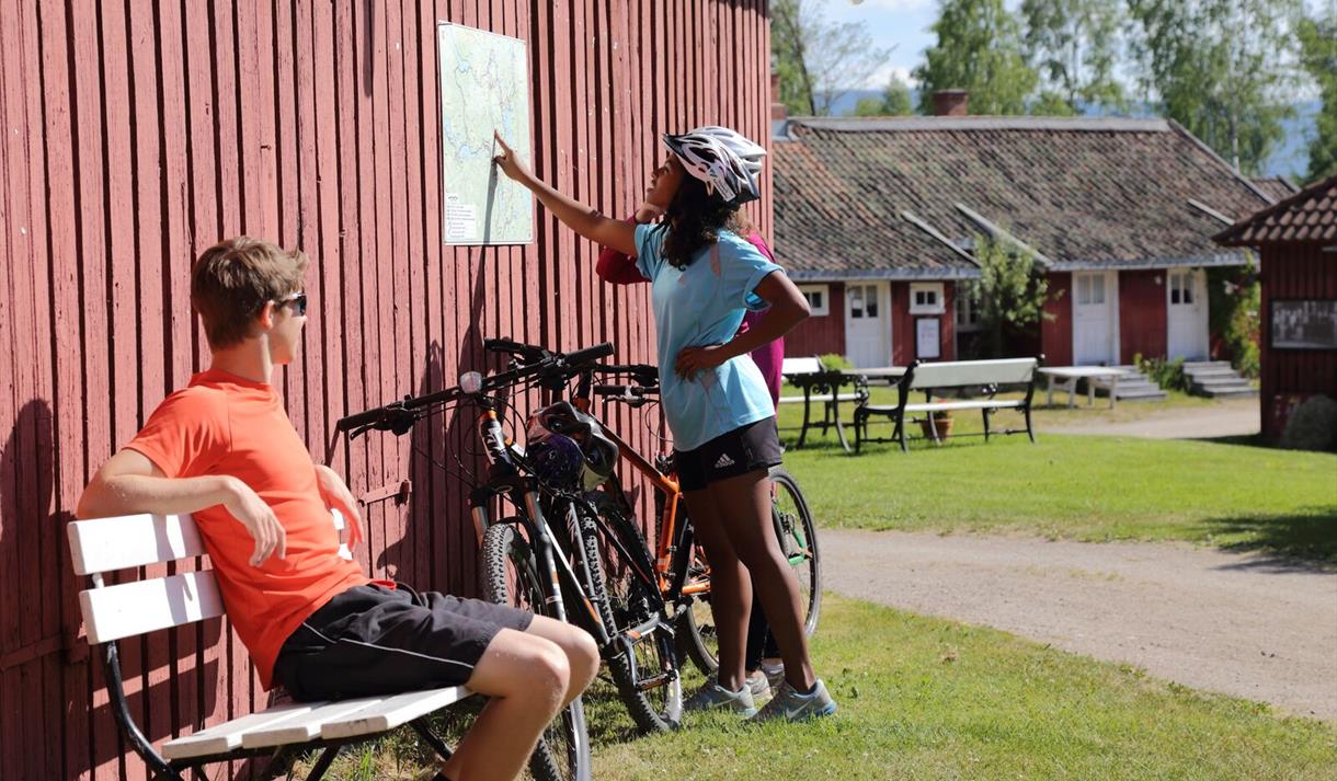 The tour begins at Øvre Verket, a collection of vibrant red-painted workers' dwellings from the early 1800s. These were originally built by the Cappelen family for the laborers at Ulefoss Ironworks. Protected as a cultural monument since 1982, the area now serves as a gateway to the region’s history. You will find cycling information and route signs posted on site.