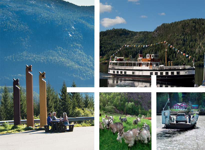 The scenery is abundant and beautiful with its smooth rocks on the salty shores, green moorland, plentiful fishing in its lakes, breathtaking waterfalls and spectacular sheer mountainsides. As a taste of Telemark on route to the fjords, or as part of a round trip, The Telemark Route is an attractive alternative. Ancient cultural heritage sites, and local art and handicrafts play a major part in the experience of traveling along this road.
