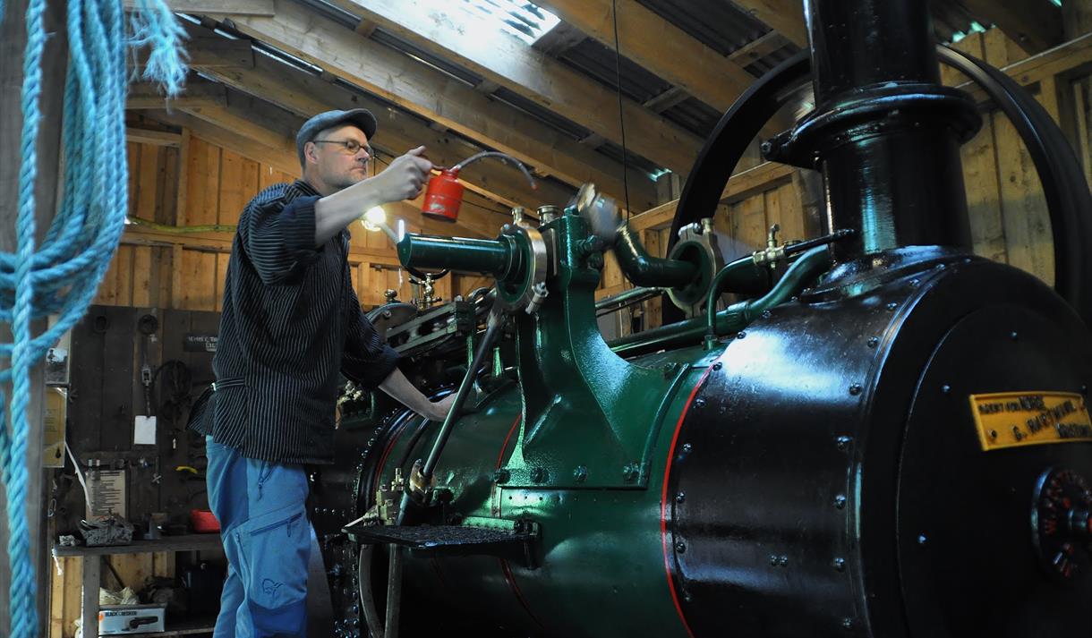 Myhre "Torvstrøfabrikk" Factory is a unique industrial heritage site and the best preserved peat litter factory in Norway. Visitors can follow the entire process from peat cutting in the bog to finished peat litter bales. The original steam locomotive engine from 1907 powers the machinery and plays a central role in the production. Carefully restored, it is an impressive feature of the factory.