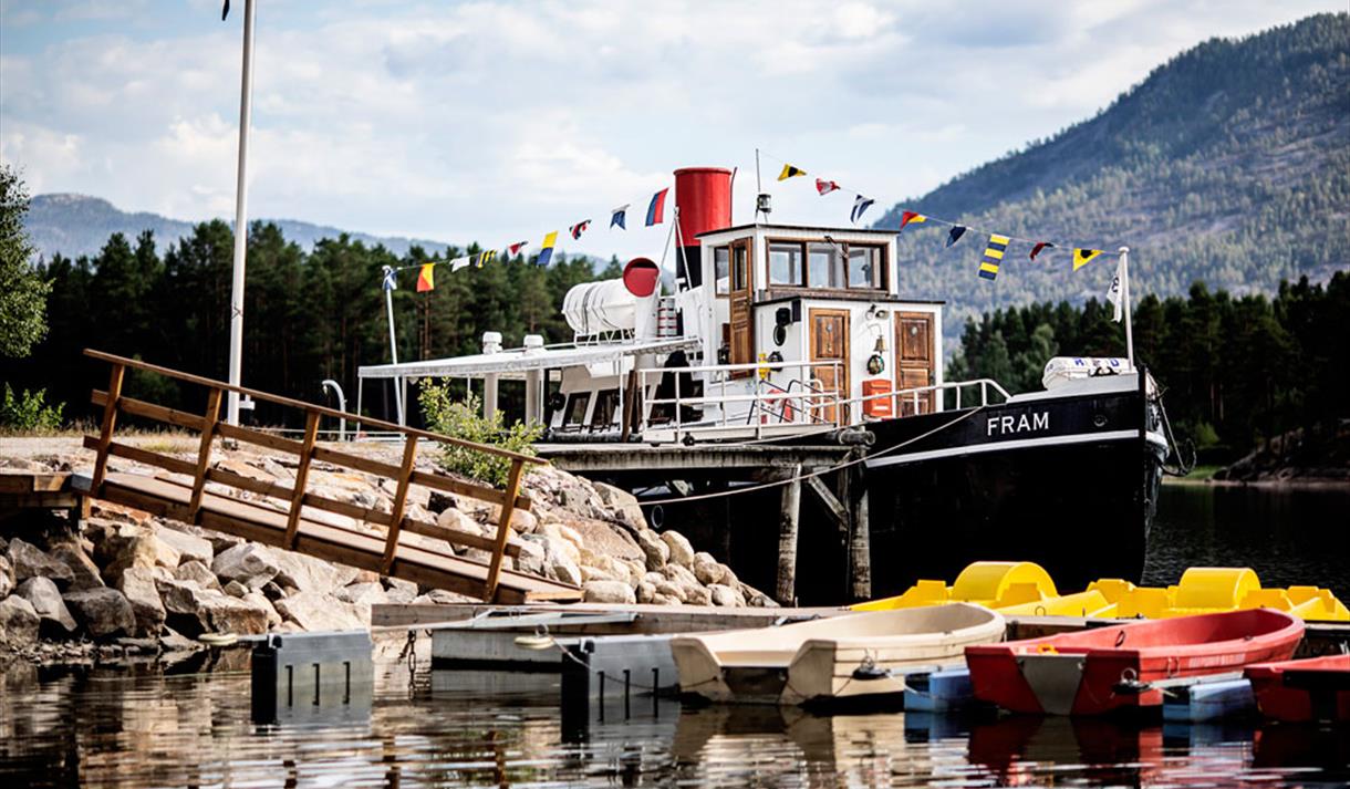 M / S Fram is a veteran boat from 1909 that sails on the beautiful lakes Nisser and Vråvatn. The boat is located at Straand Hotel's pier in Vrådal.