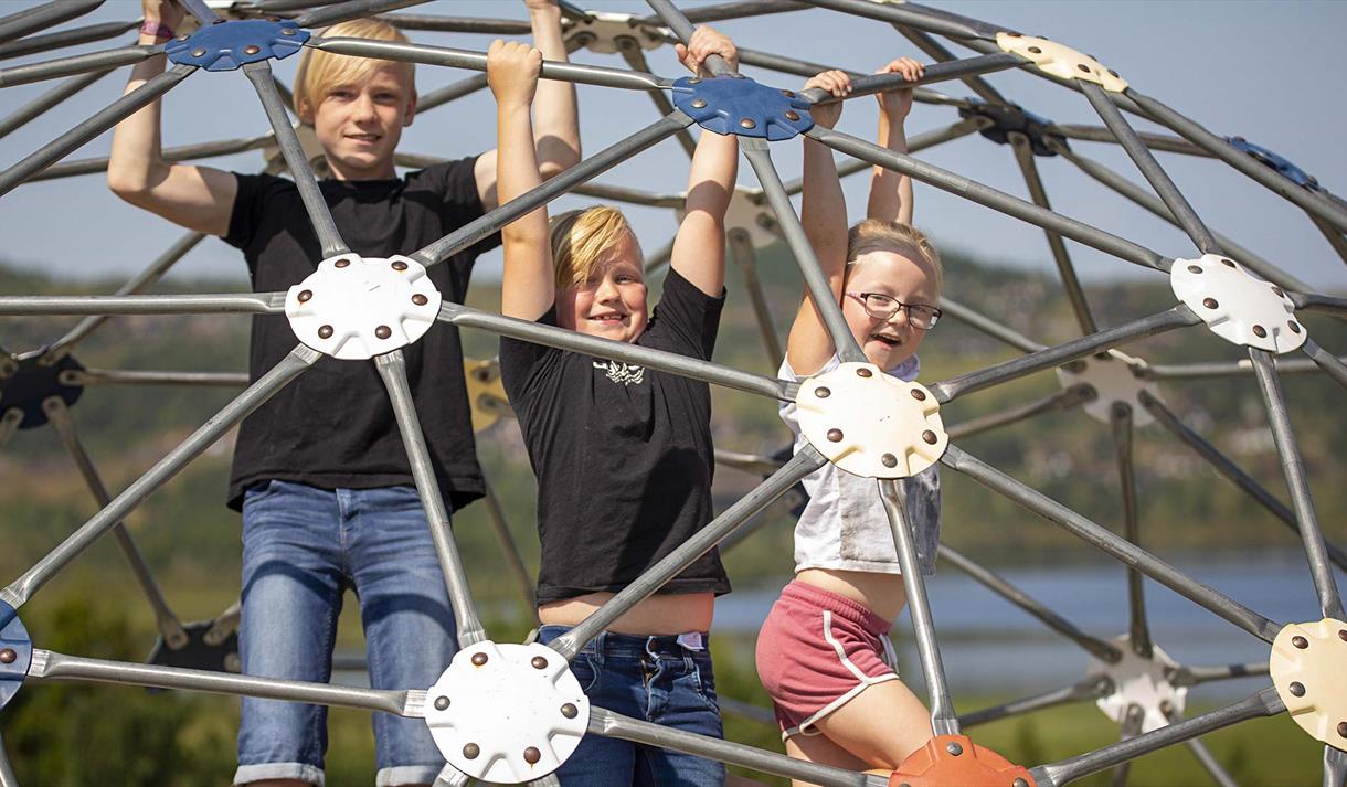 By the cafeteria you also will find go-cart cycles and tractor cycles, extended ball area/play ground with 2 soccer goals, basketball, badminton/volleyballnet, 8x8 m bouncy-pillow and Tarzan-roap for the children. You will also find a large playground with 4 trampolines, climbing wall, swings and bouncy-castle.