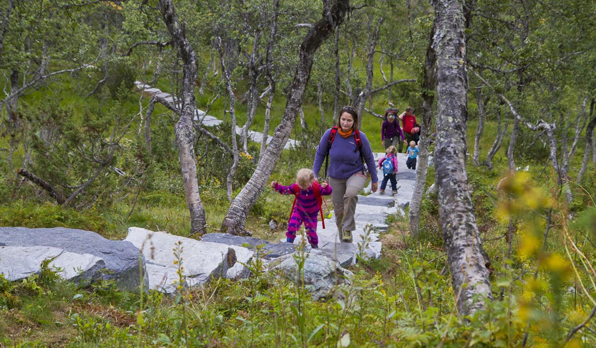 3 kmFalkeriset is one of the most popular family hikes in the Rauland region. Thanks to the beautiful stone steps meticulously laid by Sherpa teams from Nepal, the trail is both durable and easy to navigate. The hike leads you from the mountain birch forest up to a spectacular viewpoint on the high plateau, offering panoramic vistas of the Hardangervidda mountain plain and the majestic Gaustatoppen.