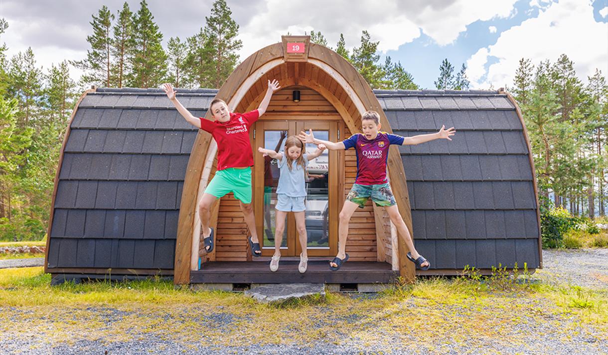 At First Camp Bø you have the opportunity to spend the night in cabins, apartments, stabbur or pods, in addition to camping outside with tents, caravans and recreational vehicles.