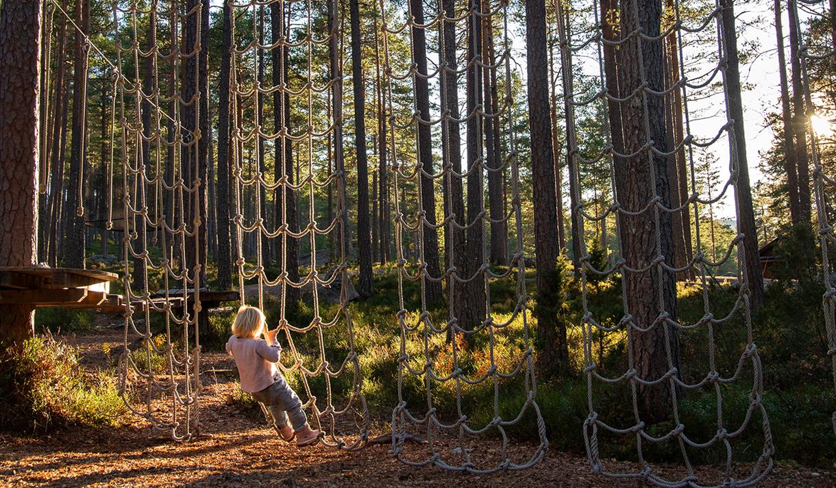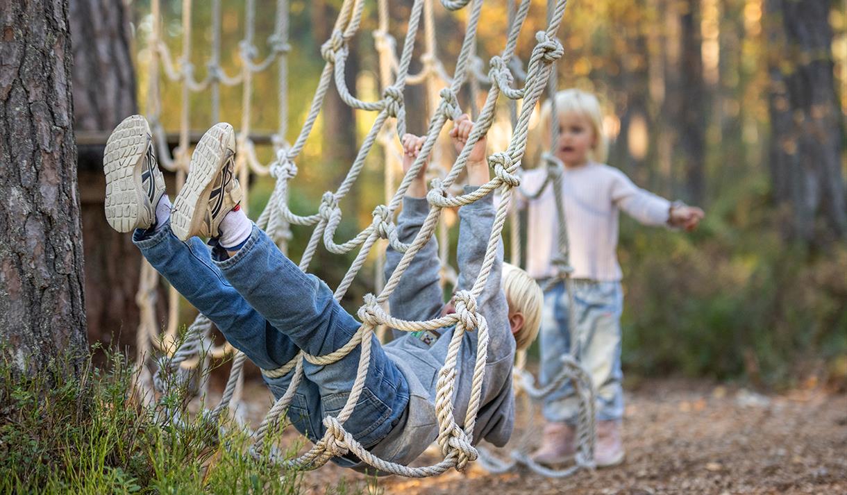 In the fall of 2021, Hamaren got its own self-organized climbing park. The climbing park, delivered by Høyt og Lavt, is designed so that you can use it without safety equipment. Here, you can climb on nets, balance, zip line, or swing on a coconut. It's very popular for both young and old.