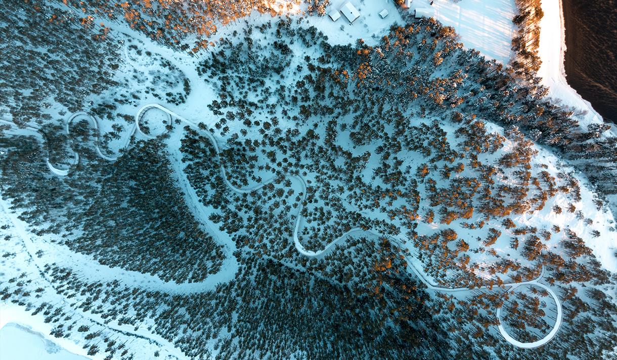 In the heart of Hamaren, there is a great cycling trail built by Bike Solutions from France. The trail is one-way, which means you cycle up one road and down another. The trail is signposted, and it is important that everyone follows the signs. The cycling trail is suitable for everyone and is graded as an easy (blue) trail.